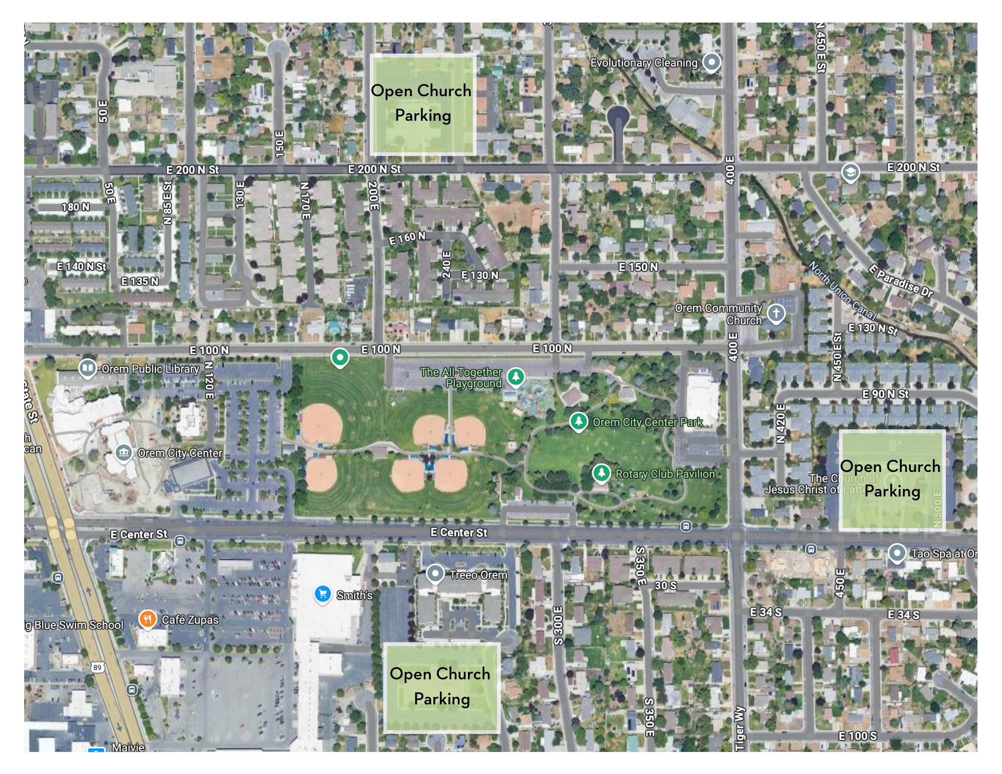 There will be limited parking available at City Center Park for the public. Check the maps above for open parking areas including church parking lots around the area. We encourage public transportation, walking, biking, and carpooling to limit traffic.